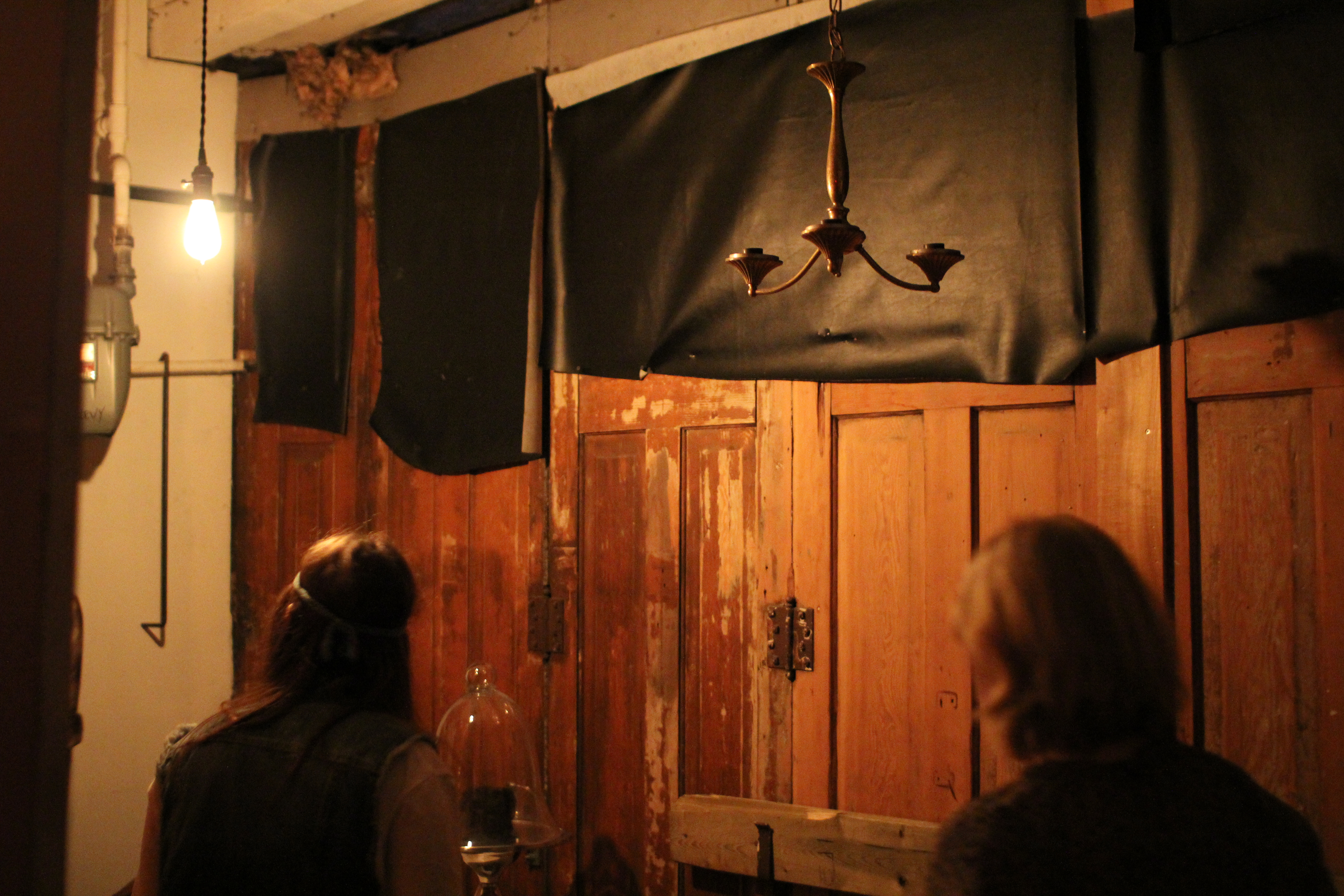 An intimate and sensorial site-specific show at Chapel Arts (a former funeral home) based on the rituals of death, thresholds of spaces, and perfectly placed eyewash stations. Two distinct scenarios are set, a warmly lit and embellished “waiting room” contrasted with the flooded barely-lit morgue where five chosen audience members stand. Audiences are drawn into a harrowing experience of wetness, darkness, loudness, and proximity, all to the haunting distortions of live cello.